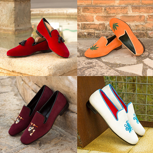 Dress slippers are elegant, slip-on footwear designed for formal occasions, offering a refined alternative to traditional dress shoes. Typically made from luxurious materials like velvet, silk, or fine leather, they often feature intricate designs, such as embroidery or subtle patterns. Dress slippers provide a sophisticated touch to evening attire, making them ideal for events like weddings, galas, or formal dinners. Their soft interiors ensure comfort, while the low-profile design maintains an air of elegance. Choose your own embroidery design.